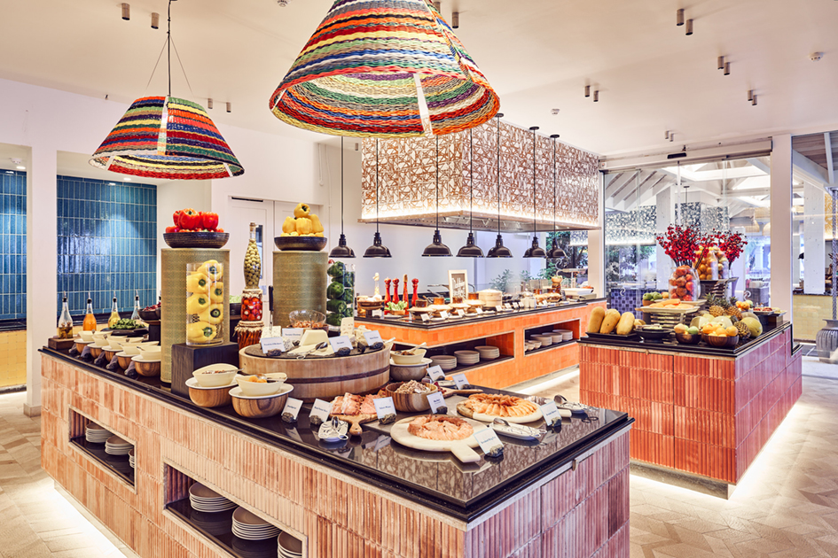 ontbijt-, lunch- en dinerbuffet in het uitstekende restaurant 'Beach Kitchen’ met thema-avonden en show cooking