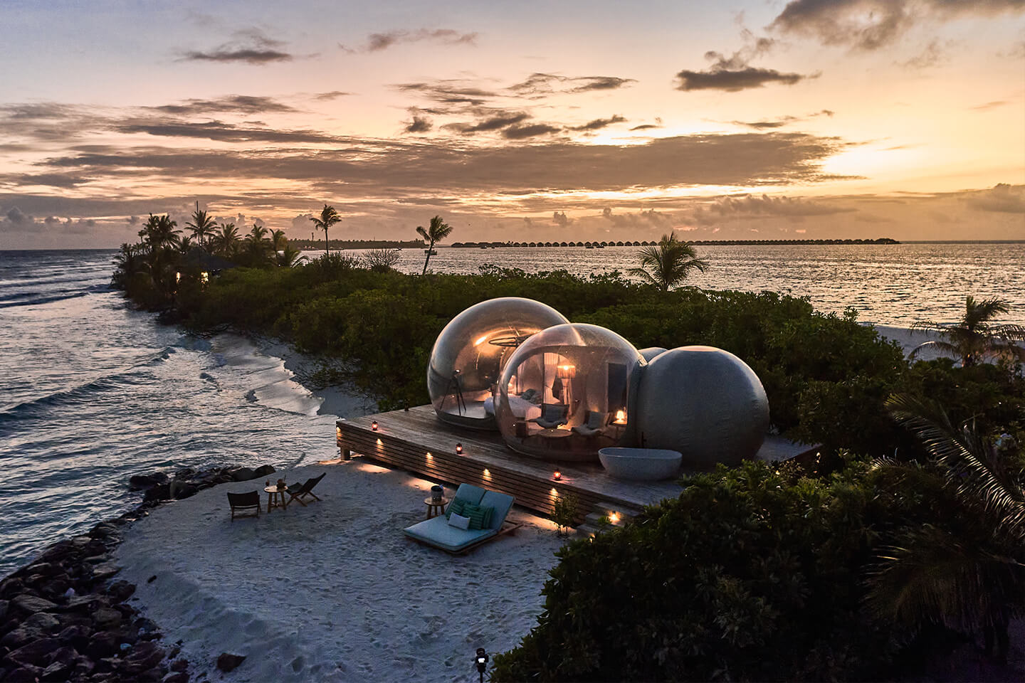 prachtige ‘Beach Bubble’, gelegen op de zandbank, voor een unieke en romantische once-in-a-lifetime overnachting onder de sterren (18:00-08:00: inclusief ontbijt, privé diner BBQ en ontbijt op het strand; boekbaar bovenop de kamerprijs)