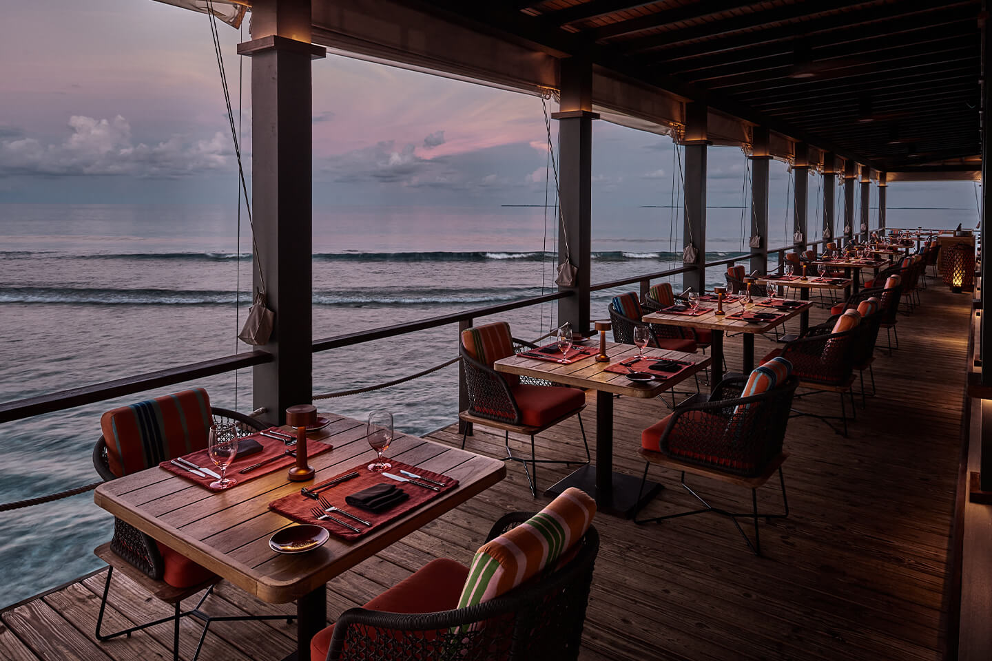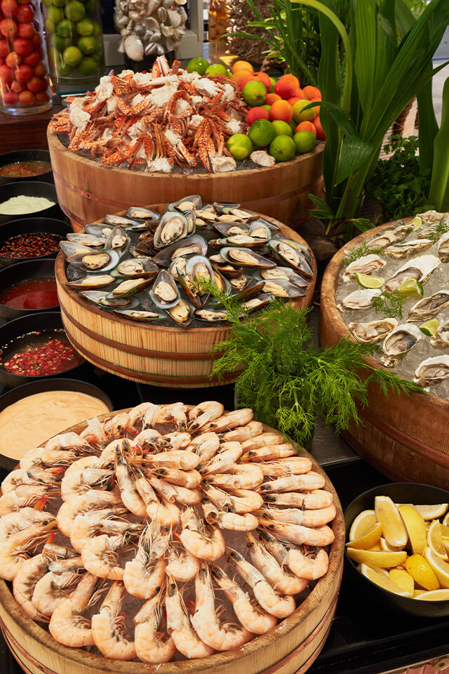 3 uitstekende à-la-carte restaurants: ‘Crab Shack’ op het einde van de zandbank aan het strand (zeevruchten, 5x per week voor lunch en 2x per week voor diner), prachtige ‘Kanusan’ (moderne Japanse keuken; diner) en ‘Arabian Grill’ (Midden-Oosters; diner)