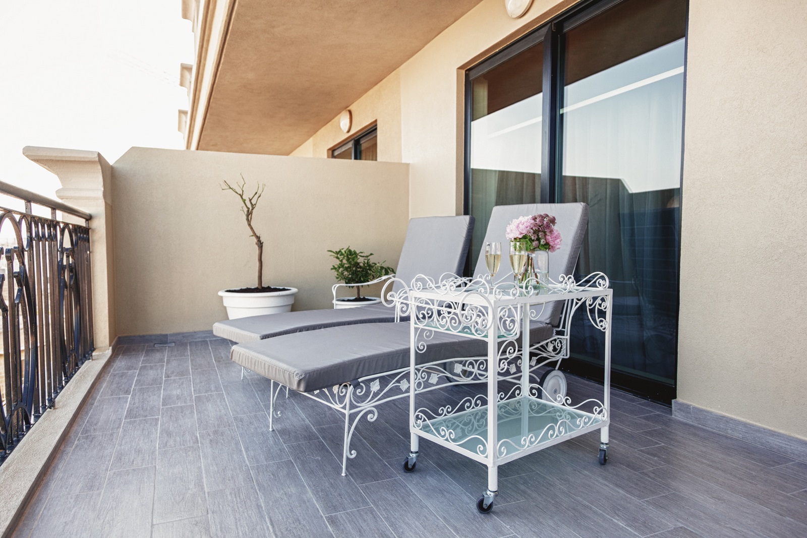 deluxe kamers (38 m²) met bad of douche, airconditioning/centrale verwarming, haardroger, telefoon, kluisje, badjas, minibar, satelliet-tv, wifi, koffie- en theezetfaciliteiten, balkon