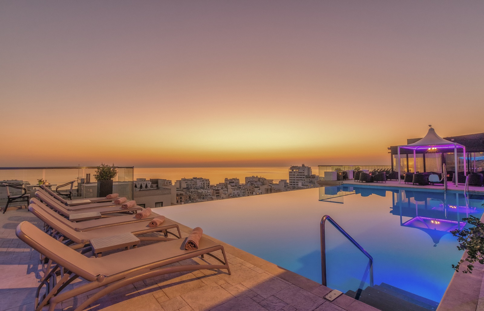 In het levendige centrum van Sliema aan de oostkust van Malta vindt u dit modern ingerichte vijfsterrenhotel. In de knappe rooftopbar geniet u, een drankje in de hand, van het prachtige uitzicht op de haven en hoofdstad Valletta. Twee stijlvolle restaurants vergasten u op het allerbeste uit de mediterrane en Aziatische keuken. In uw kamers of suite zorgen houttinten voor de nodige warmte. U hebt er een onbeperkt uitzicht op de binnentuin, de stad of de zee. Heerlijk cocoonen kan niet alleen in een buiten- maar ook in een binnenzwembad , en u kunt zich ook in de watten laten leggen in de spa met sauna en stoomcabine.