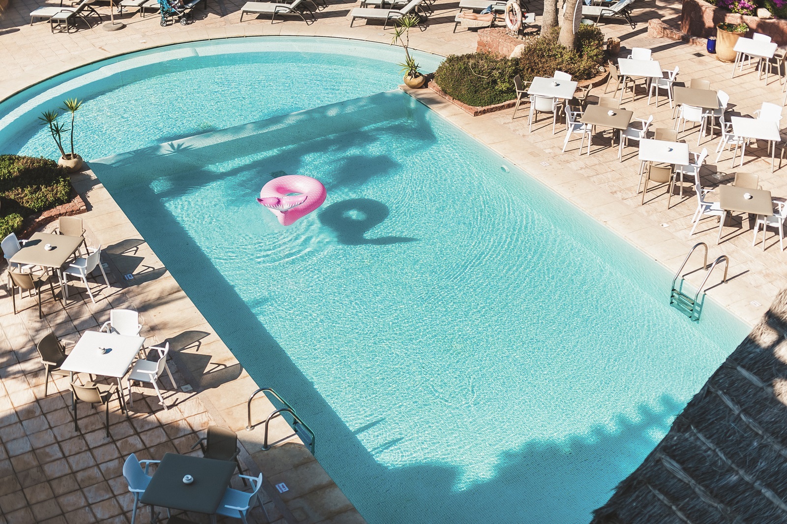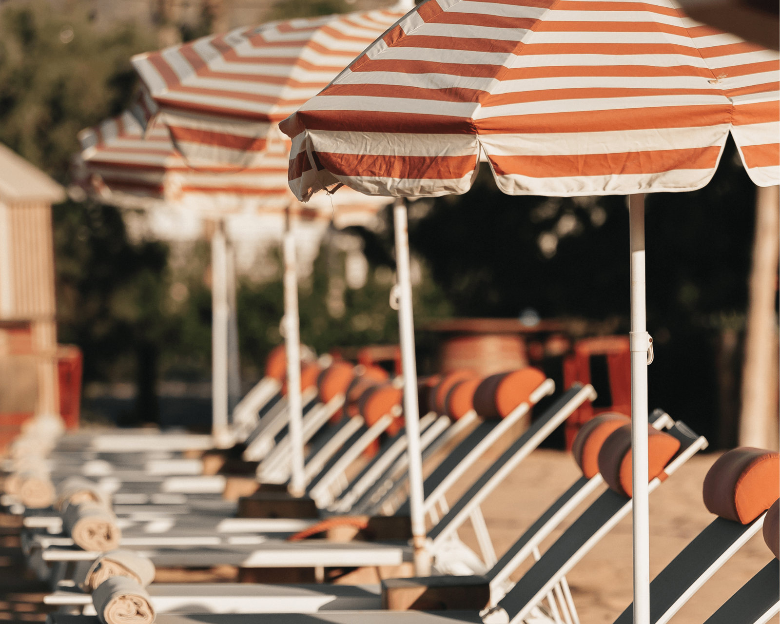 gratis ligbedden, handdoeken en parasols aan het zwembad en het strand