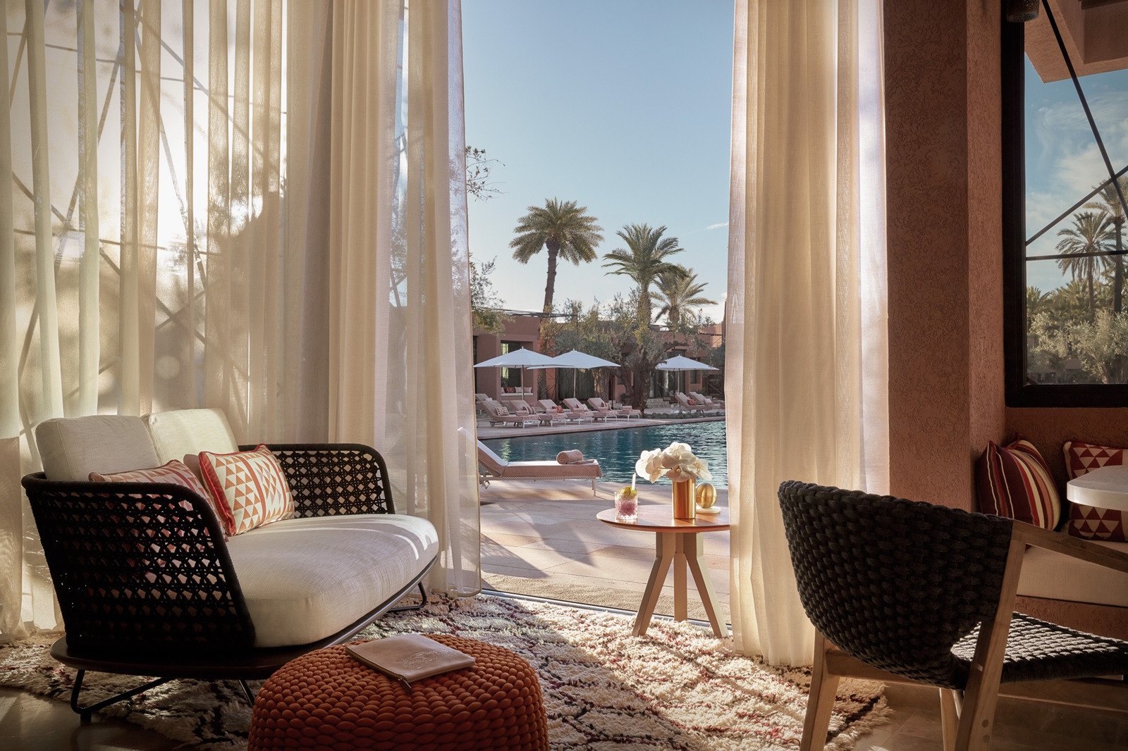 alle exclusieve (duplex) Riads met een geraffineerde Marokkaanse inrichting staan in teken van privacy en hebben een patio met fontein, salon, aparte slaapkamer, schitterende badkamer (met bad, douche, haardroger), open haard, airconditioning, telefoon, flatscreen tv, wifi (gratis), minibar (€), Nespresso®-apparaat, kluisje en ruim dakterras met privé plonsbad