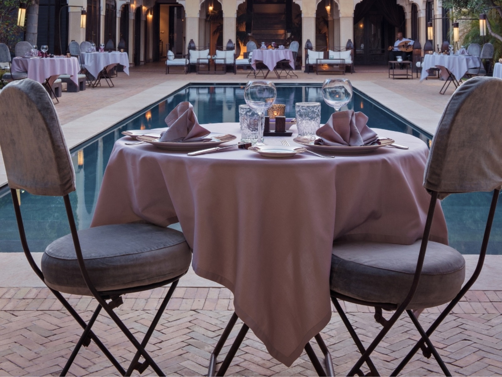 Deze stijlvolle en ruime riad ligt in het hart van de medina en vlakbij de Koutoubia moskee. Dit pareltje, behorende tot de Relais & Châteaux keten, werd gebouwd rond 3 patio’s met fonteinen en beplantingen. Maak kennis met de elegante, traditionele en gesofisticeerde Marokkaanse en Afrikaanse inrichting. U geniet hier eveneens van een uitstekende gastronomie en van een gratis dagelijkse lunch, opgediend in één van de mooie patio’s of terrassen. Een echte aanrader en oase van rust in het geanimeerde en drukke Marrakech!
