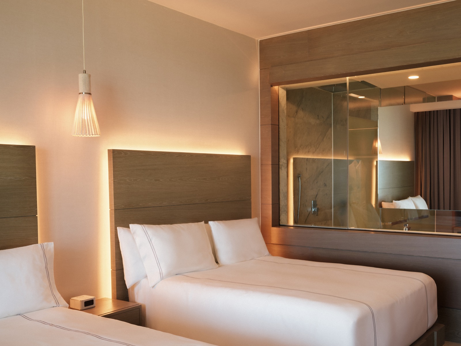 alle kamers beschikken over een kingsize bed of 2 queensize bedden, zithoek, badkamer met regendouche, haardroger, telefoon, flatscreen-tv, kluisje, minibar, wifi, airconditioning, balkon of terras