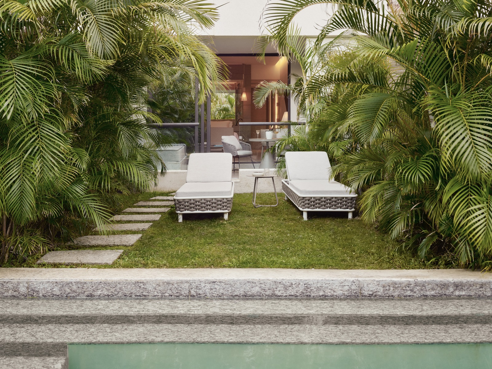 Captivate Swim-out kamers (69 m²) met kingsize bed of 2 queensize bedden en toegang tot een privé tuin die leidt naar het ‘rivierzwembad’