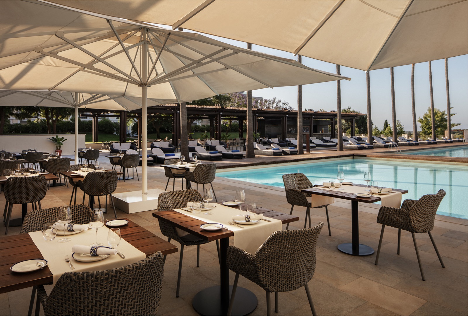 ‘Palms Pool Bar’ aan het adults only zwembad (met lichte maaltijden, lunch) en exclusieve adults only gin bar ‘Botanic’