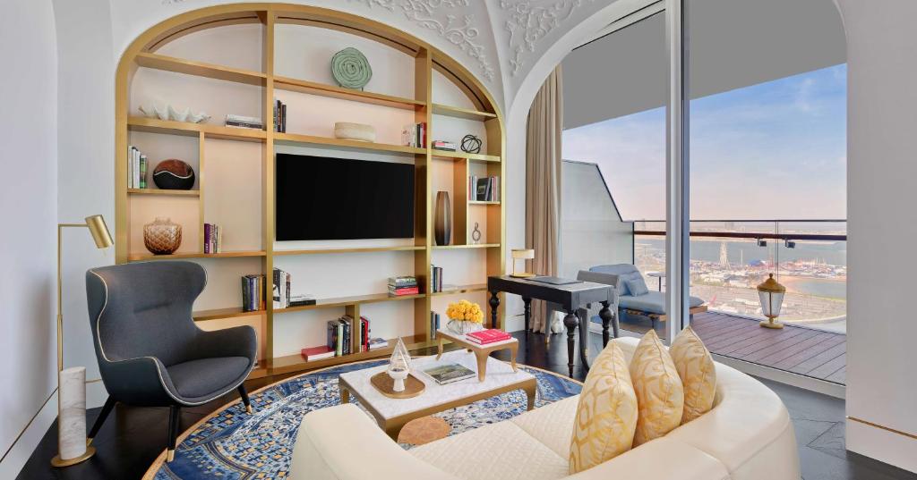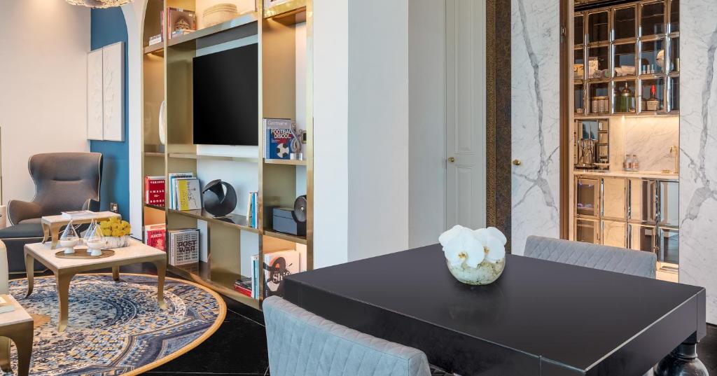 alle schitterend ingerichte suites zijn het toonbeeld van ultieme luxe en werden met veel oog voor detail ingericht, bieden veel lichtinval en hebben een prachtige marmeren badkamer (alleenstaand bad, experience douche (met stoom), haardroger), aparte slaapkamer & living, ruime dressing, airconditioning, kluisje, espresso machine, in-suite boutique (€), flatscreen tv, wifi (gratis) en ruim balkon of terras