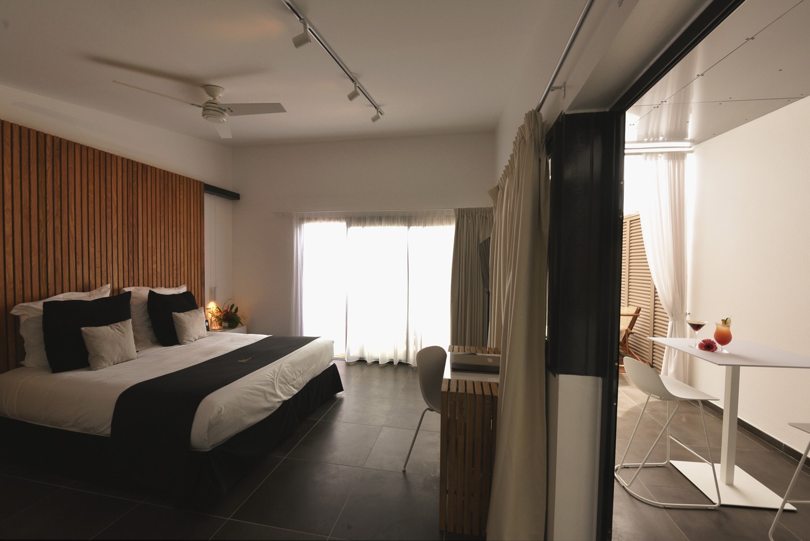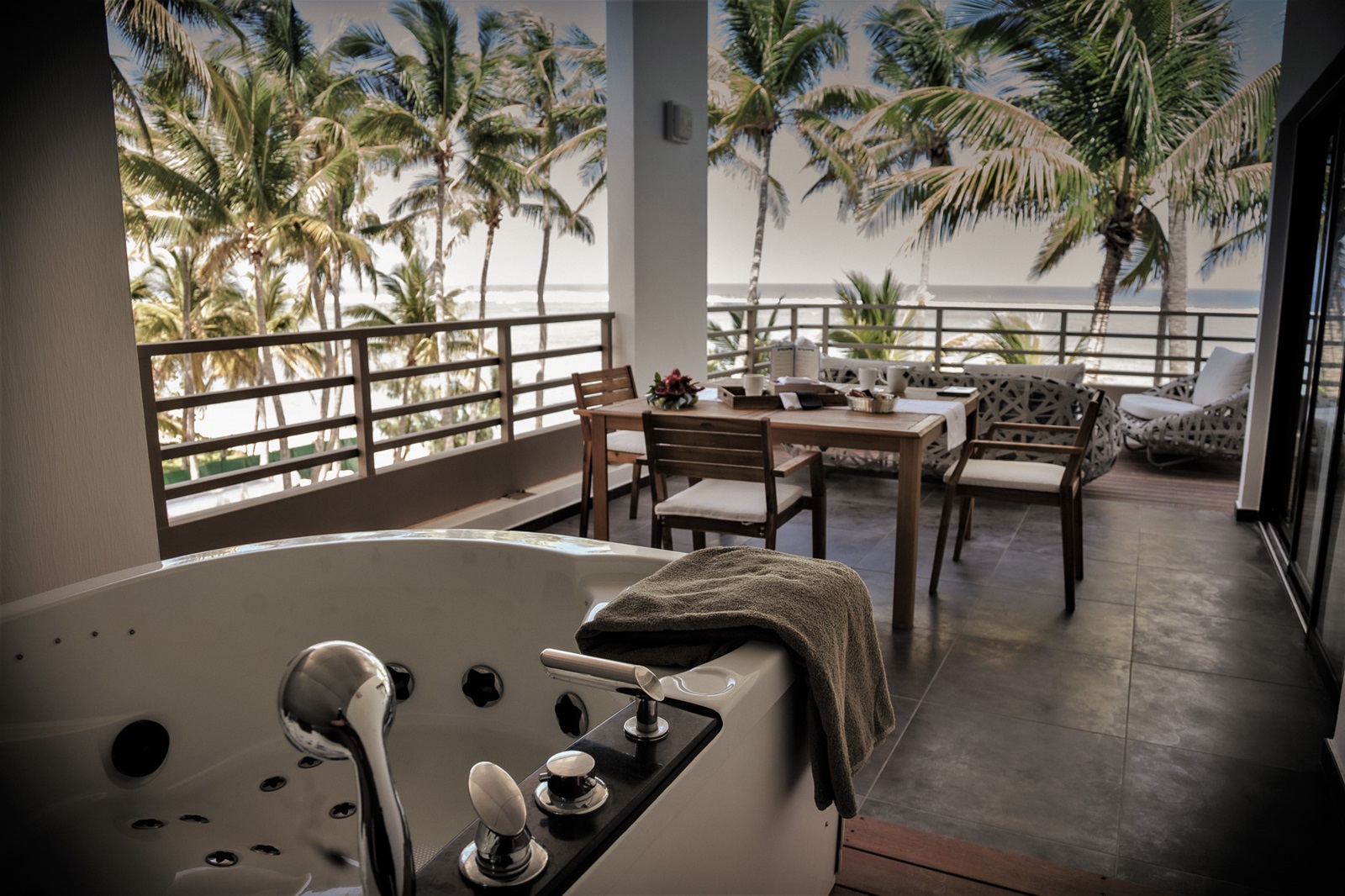 senior rooftop suites (50 m²) met woonkamer, aparte slaapkamer, 2 badkamers (één met douche en één met bad) en prachtig terras van 34 m² met jacuzzi en zicht over de lagune