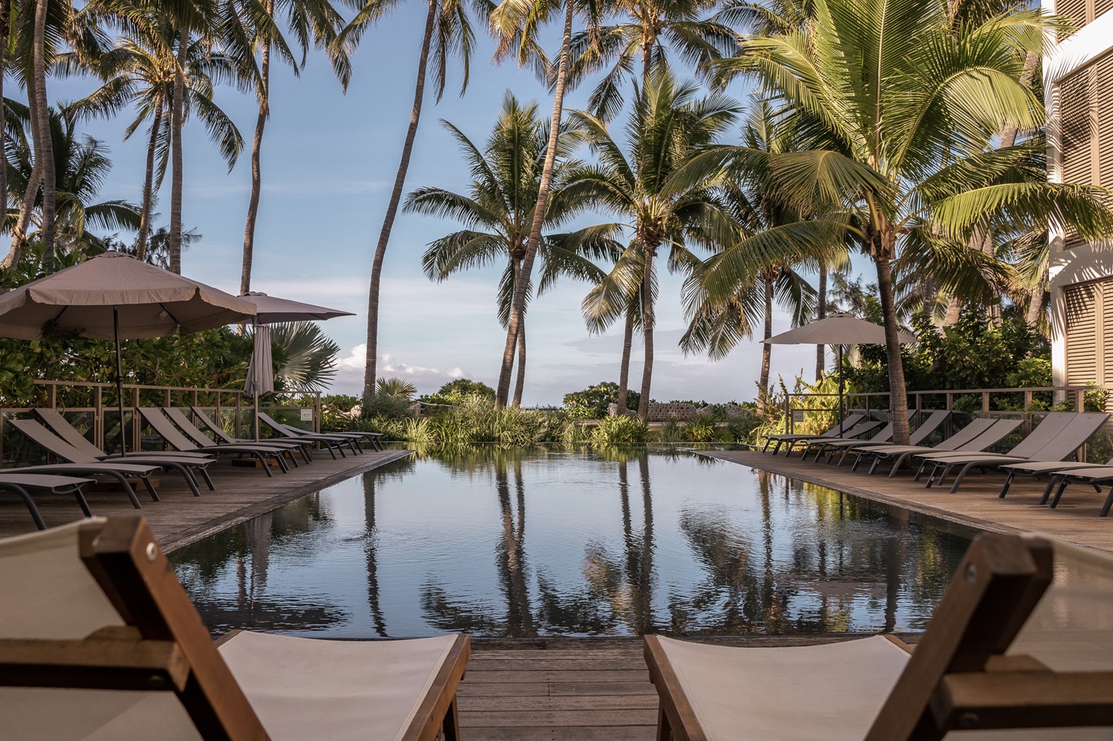 gratis ligbedden, handdoeken en parasols aan het zwembad
