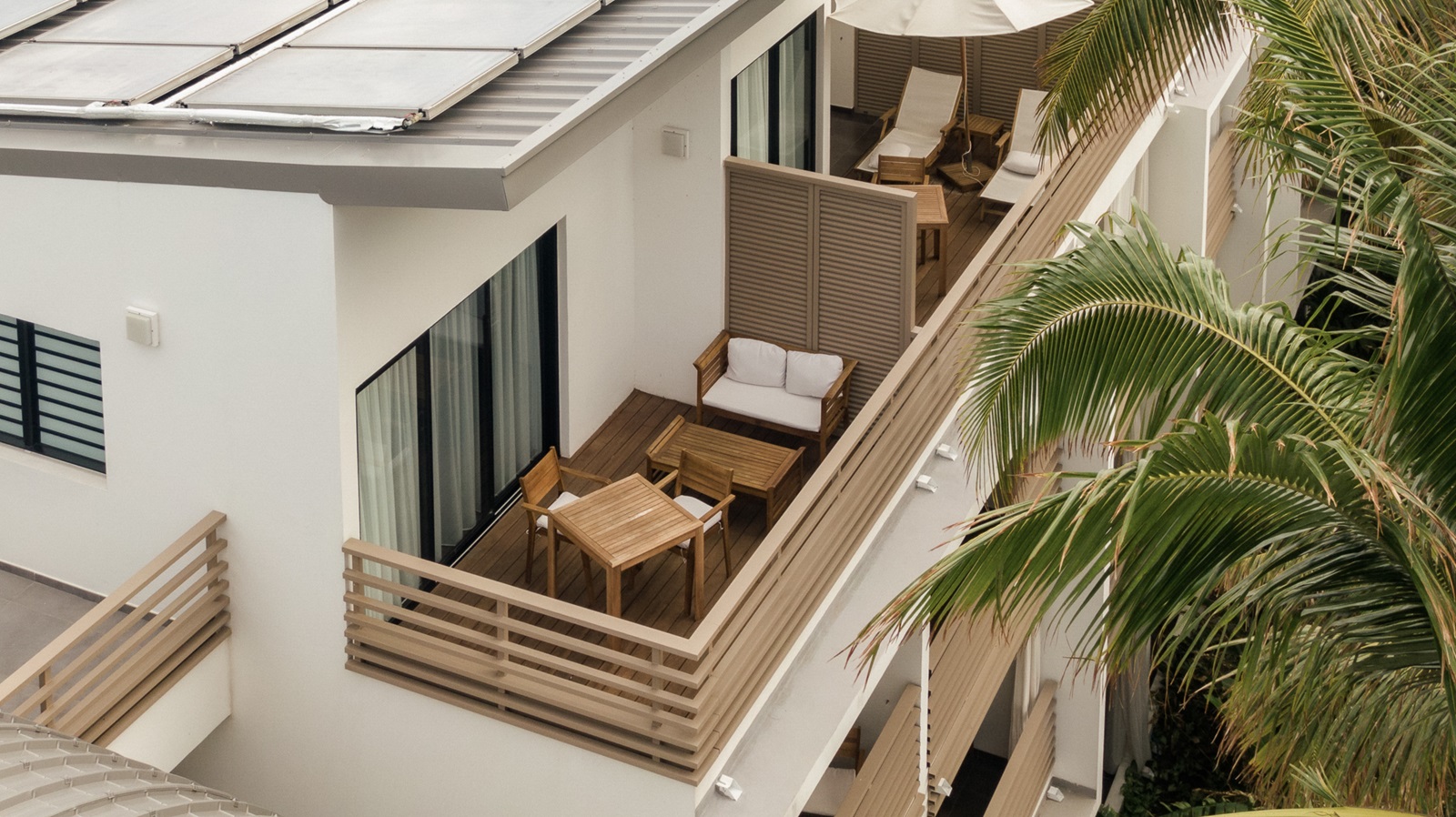 rooftop kamers (40 m²) gelegen op de bovenste verdieping met ruim balkon (15 m²) en tuinzicht
