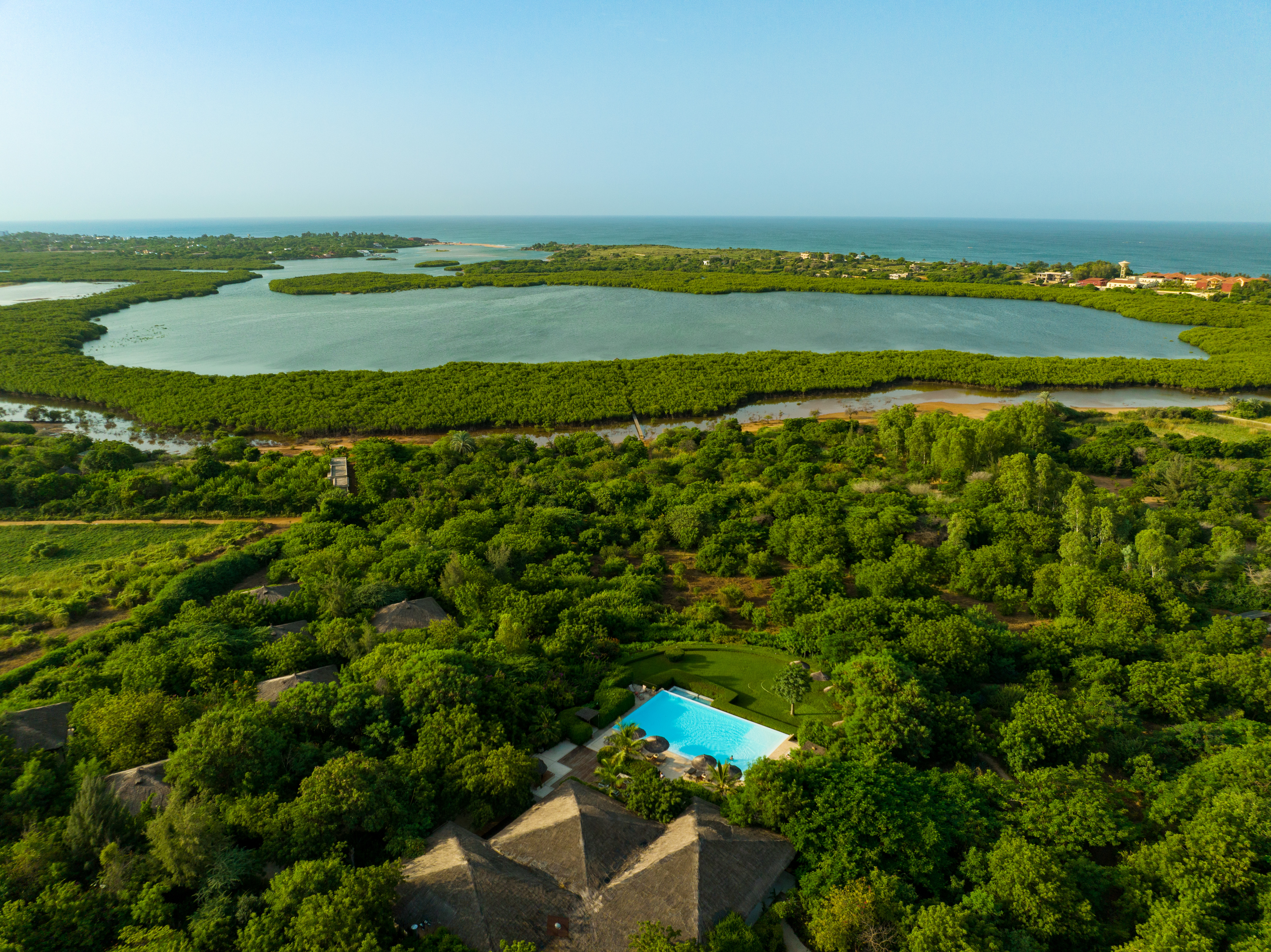 Les Manguiers de Guéréo is een luxueuze lodge in Senegal, idyllisch gelegen aan de rand van de lagune van La Somone. Omringd door een ongerepte natuur van mangroves, vogels en baobabs, biedt dit intieme hotel een unieke combinatie van rust, authenticiteit en verfijnde elegantie. Verspreid over een domein van 10 hectare liggen de charmante kamers, suites en villa’s, waarvan sommige met privézwembad en panoramisch uitzicht op de lagune of de oceaan. Hier geniet u van absolute sereniteit, Senegalese gastvrijheid en exclusieve ervaringen: van vogelobservaties in speciaal aangelegde observatoria tot kajaktochten op de lagune en excursies naar de Bandia-reserve of de beroemde Île de Gorée. Les Manguiers de Guéréo is de perfecte plek om in luxe te onthaasten en de magie van Senegal te ontdekken.