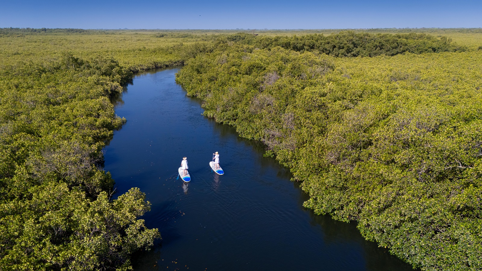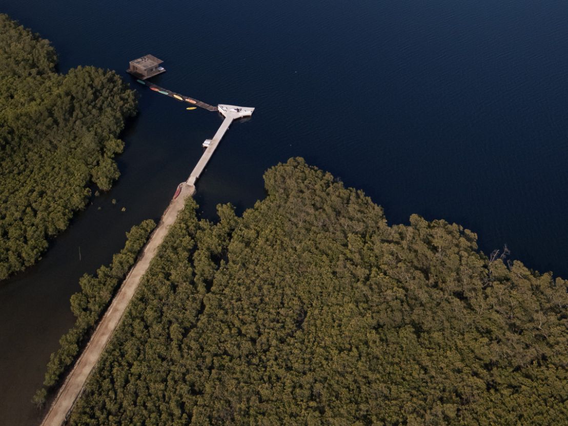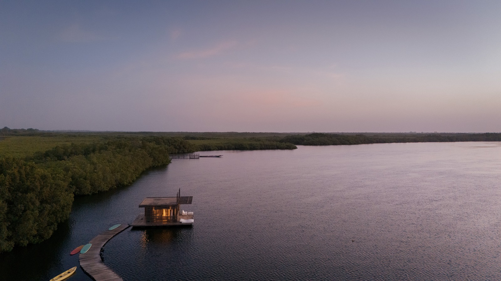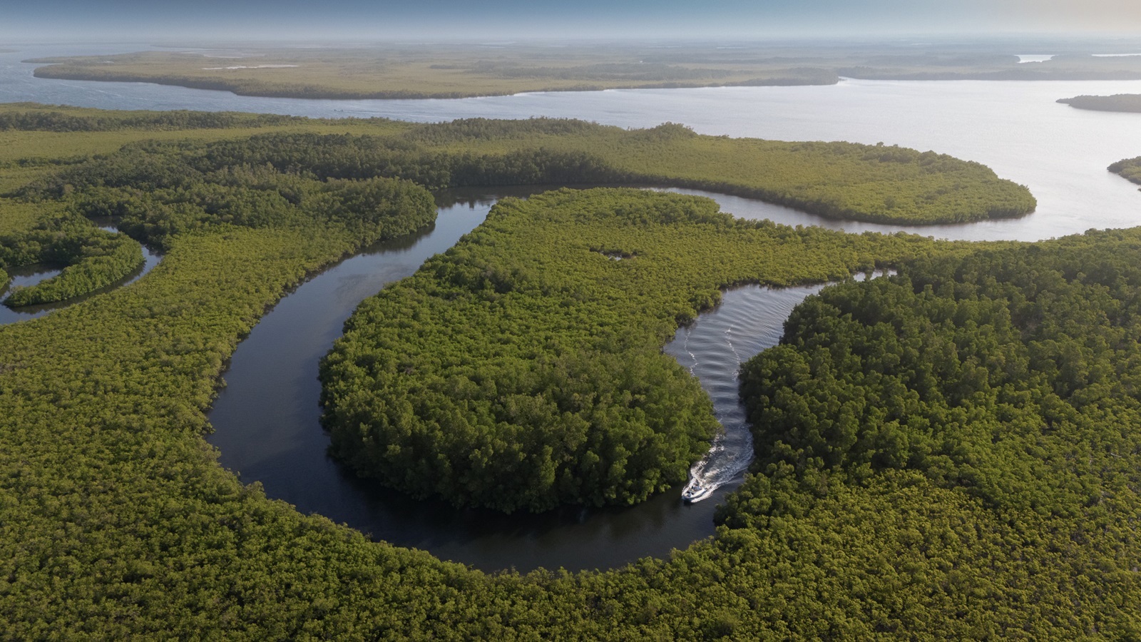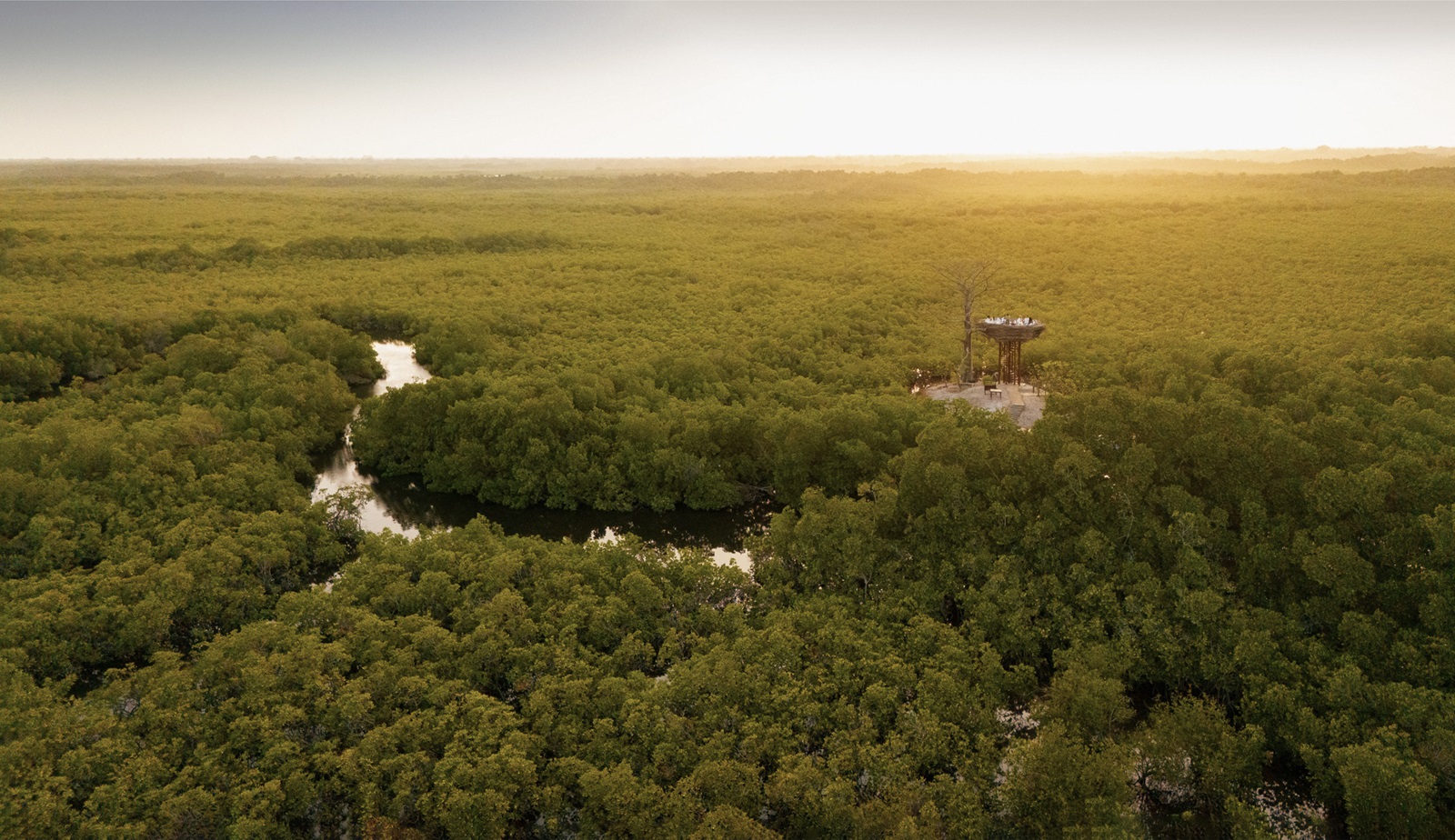 midden in een mangrovedelta die behoort tot UNESCO Werelderfgoed