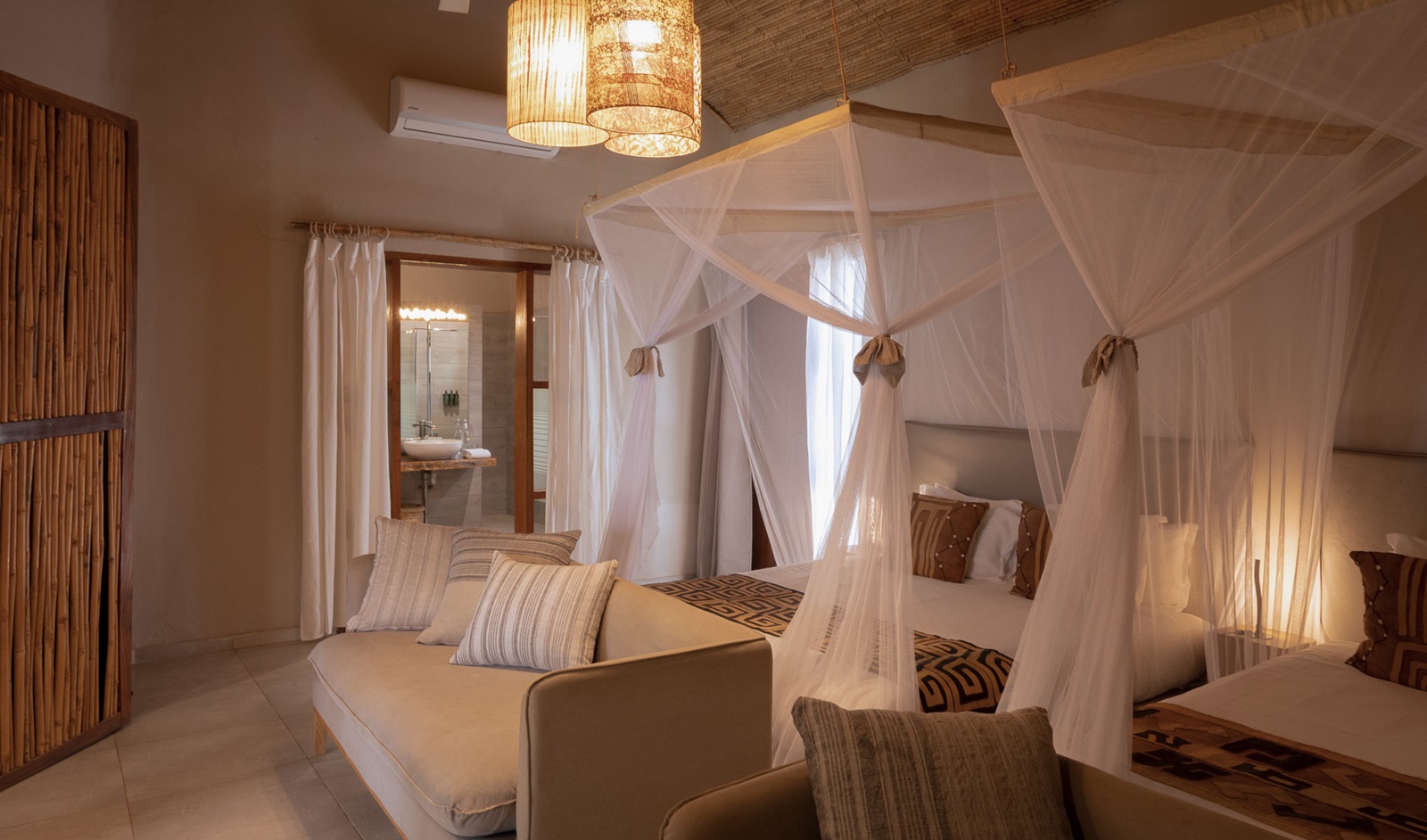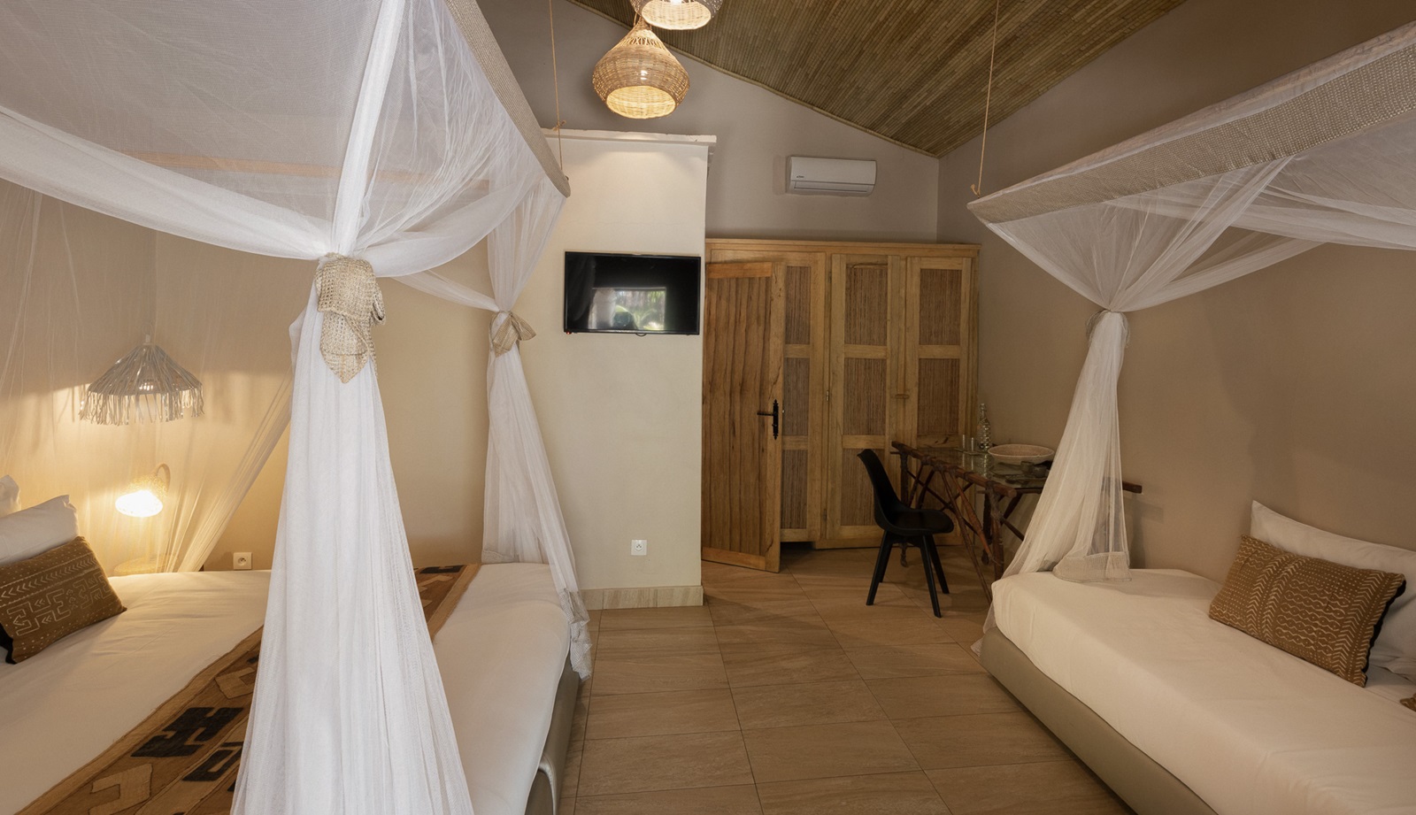 suites (45 m²) gelegen tussen baobabs en bougainvilliers, met grotere badkamer en tuinzicht