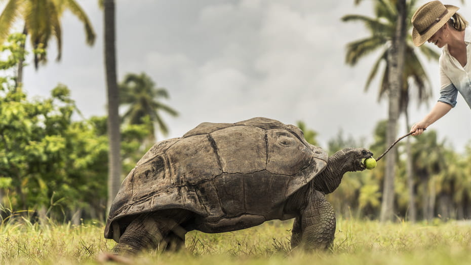 ‘Tortoise Sanctuary’ in teken van de reuzenschildpadden op het eiland