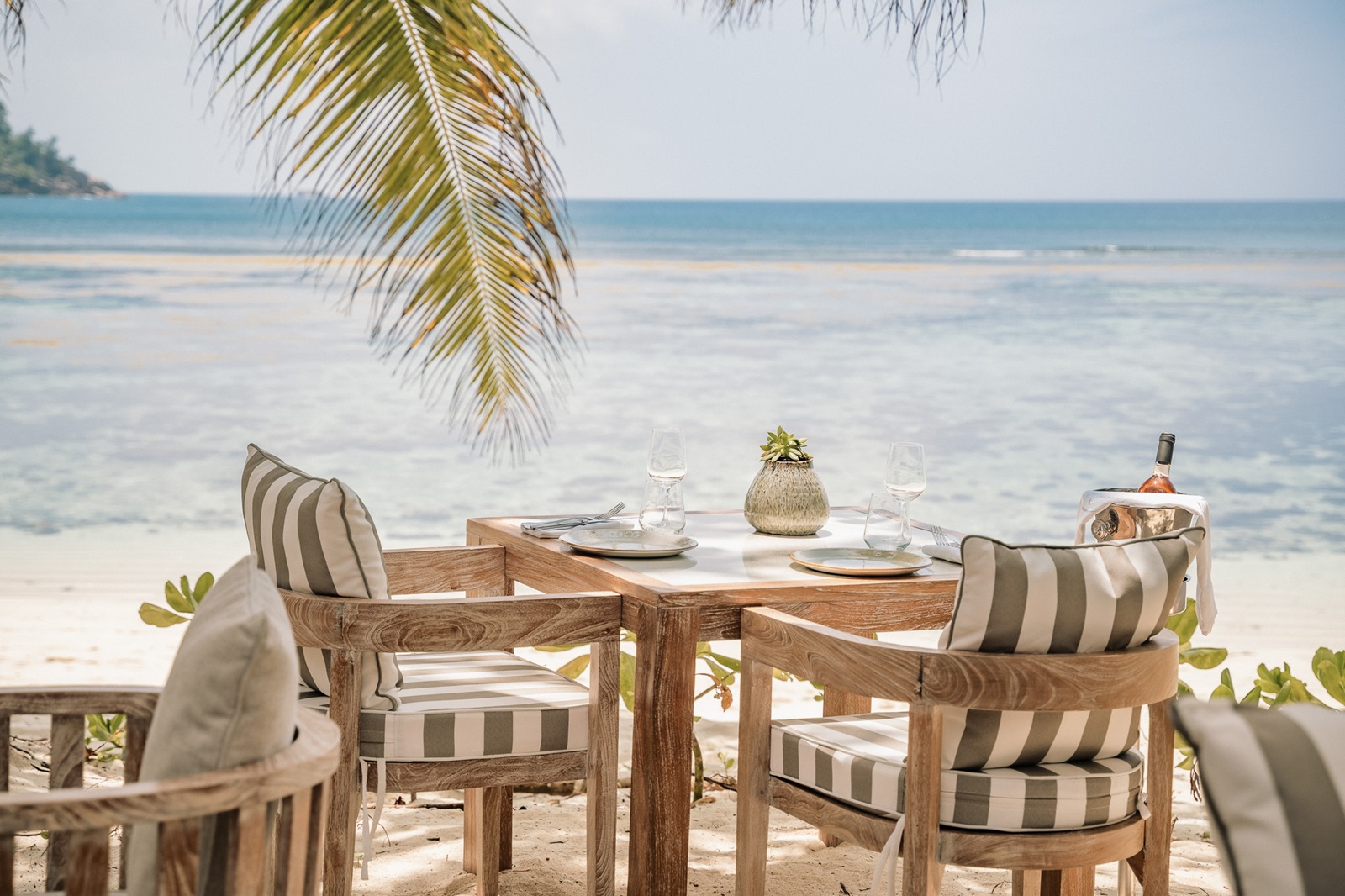 direct aan het zandstrand van Baie Lazare aan de Zuidwestkust van Mahé