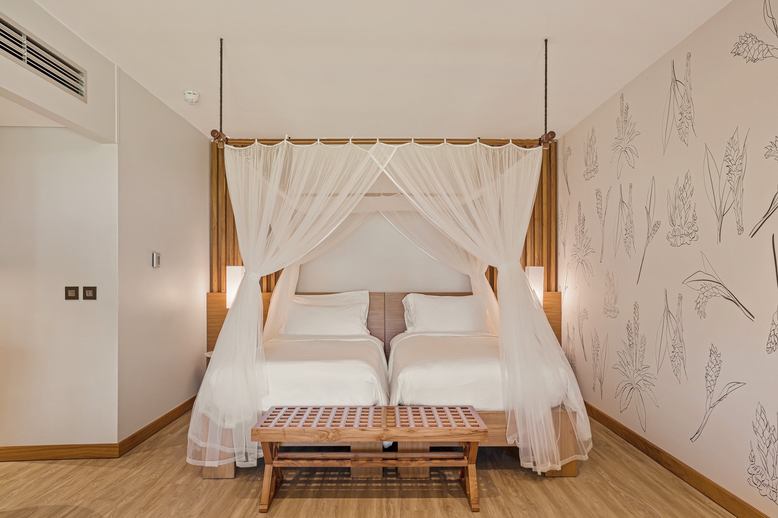 alle elegante kamers met authentieke en moderne accenten liggen in clusters verspreid in de tuin en hebben een badkamer (douche, haardroger), badjassen en slippers, hemelbed, zithoek met sofabed, airconditioning, kluisje, minibar (€), koffie- en theezetfaciliteiten, flatscreen-tv, wifi en balkon of terras