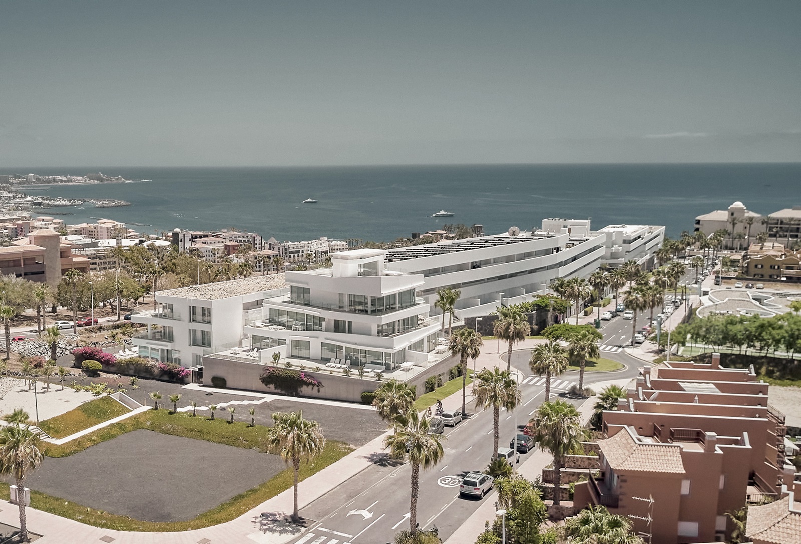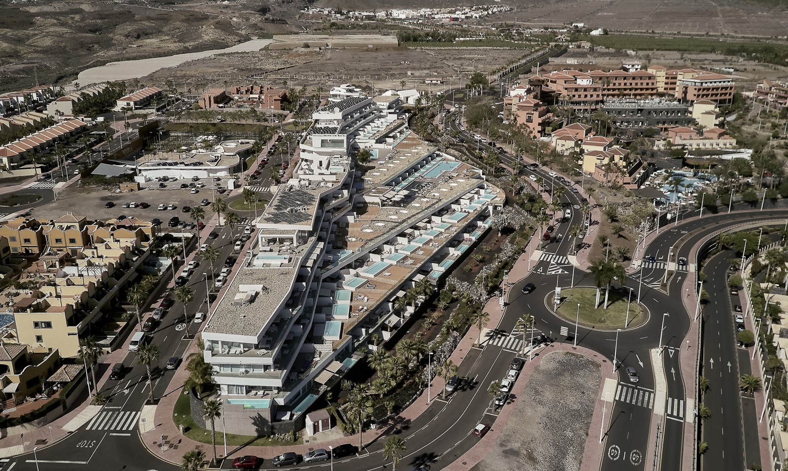ca. 1 km van het zandstrand (1x/dag/kamer taxitransfer naar Playa del Duque 09:00-17:00)