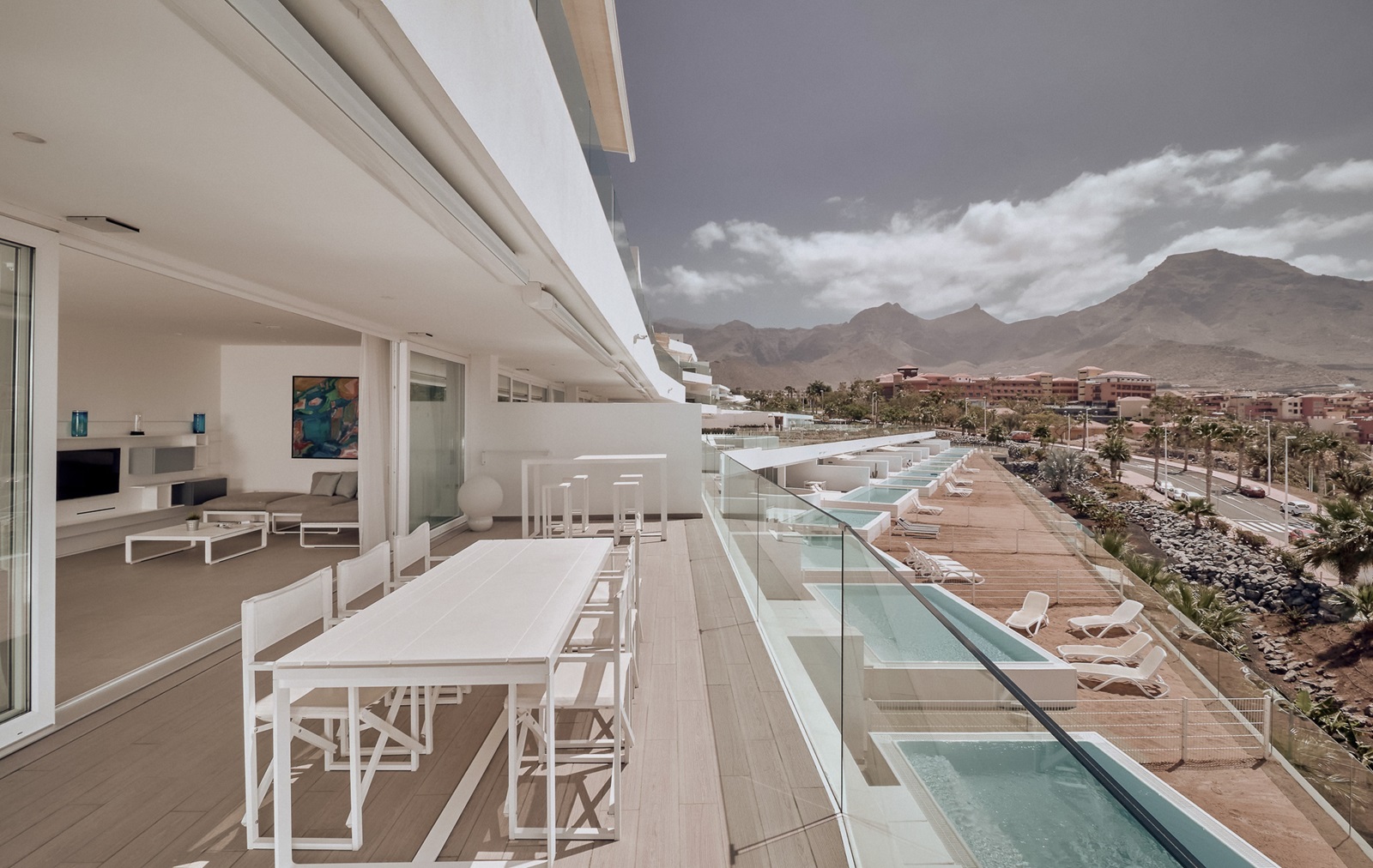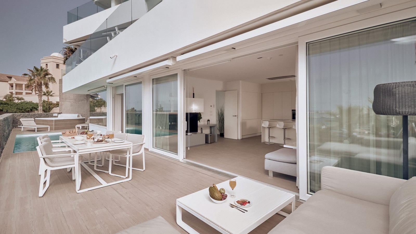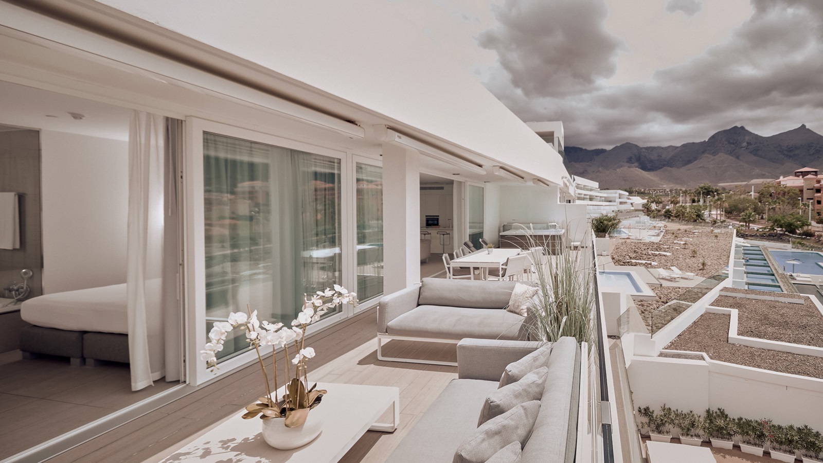 Het stijvolle luxeresort Baobab Suites in Costa Adeje, Tenerife is dankzij zijn uitgekiend design een ware streling voor het oog. De ruime appartementen, de meeste met zeezicht en sommige met privézwembad, verwennen u met eigentijdse decorelementen en een compleet uitgeruste keuken inclusief trendy wok en tepanyaki-plaat. In de luxueuze appartementen geniet u bovendien van hotelservice. Zo heeft u bijvoorbeeld de keuze uit ontbijtbuffet of een uitgebreid ontbijt op de kamer. Twee verwarmde buitenzwembaden in een tropische setting bieden verkoeling en rust. Voor wie actief wil blijven, zijn er de Actívate Sports Club en voor wie ontspanning zoekt, is er de Nirama wellness, waar ayurvedische behandelingen centraal staan. Gezinnen met kinderen genieten bovendien van een gratis kidsclub.