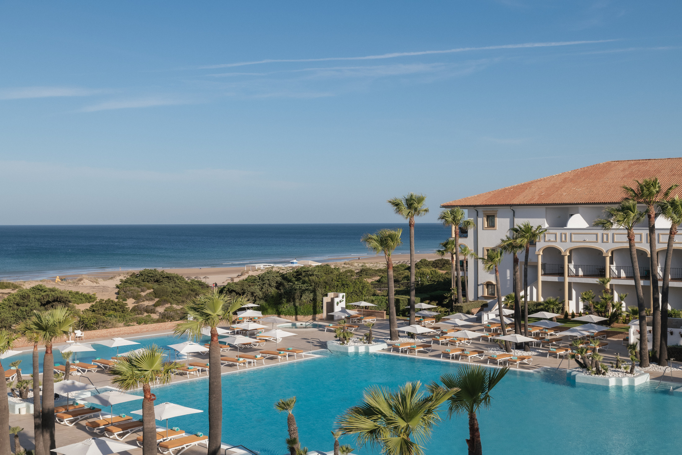 Iberostar Selection Andalucia Playa in Costa de la Luz is een uitnemend vijfsterrenhotel in Andalusische stijl, gelegen aan La Barrosa beach. Slechts een smalle boulevard scheidt het hotel van het stand en de zee. U geniet hier van een uitgebreide all-inclusive waar u zelden genoeg van krijgt. De keuken van het hotel is namelijk uitmuntend. Met tal van bars en restaurant zorgt Iberostar Selection Andalucia Playa ervoor dat u nooit of te nimmer op uw honger hoeft te zitten. Hoge gastronomie gaat in dit hotel overigens hand in hand met weelderige sportfaciliteiten. Vooral golfliefhebbers kunnen hun slag oefenen aan het 36 holes terrein.