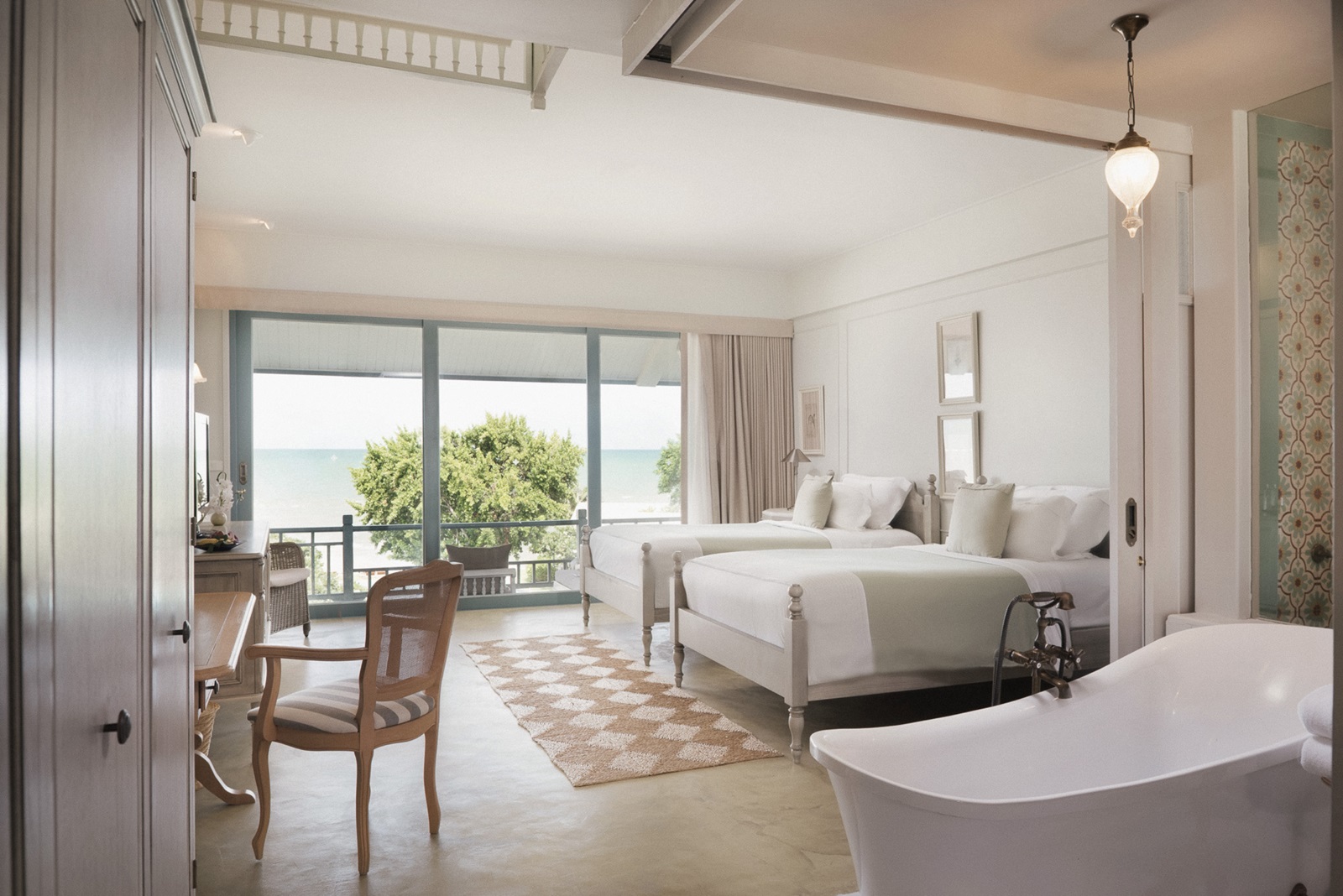 Het luxueuze Devasom Hua Hin Resort is een bekroond boutiquehotel, rustig gelegen aan een privéstrand tussen Hua Hin en Cha-am in Thailand. Dit elegante vijfsterrenresort telt slechts 23 kamers en villa’s en ademt de romantische sfeer van het klassieke Hua Hin uit de Siamese periode. De architectuur en het interieur zijn geïnspireerd op historische strandhuizen en combineren nostalgische charme met hedendaags comfort. Vanuit elke kamer geniet u van een panoramisch zeezicht, terwijl het infinityzwembad, de tropische tuin en het verfijnde restaurant zorgen voor een ontspannen, intieme vakantiebeleving. Dankzij de persoonlijke service, de serene ligging en de dagelijkse shuttles naar Hua Hin is Devasom Hua Hin Resort de ideale keuze voor koppels en levensgenieters die op zoek zijn naar rust, elegantie en authenticiteit aan zee.