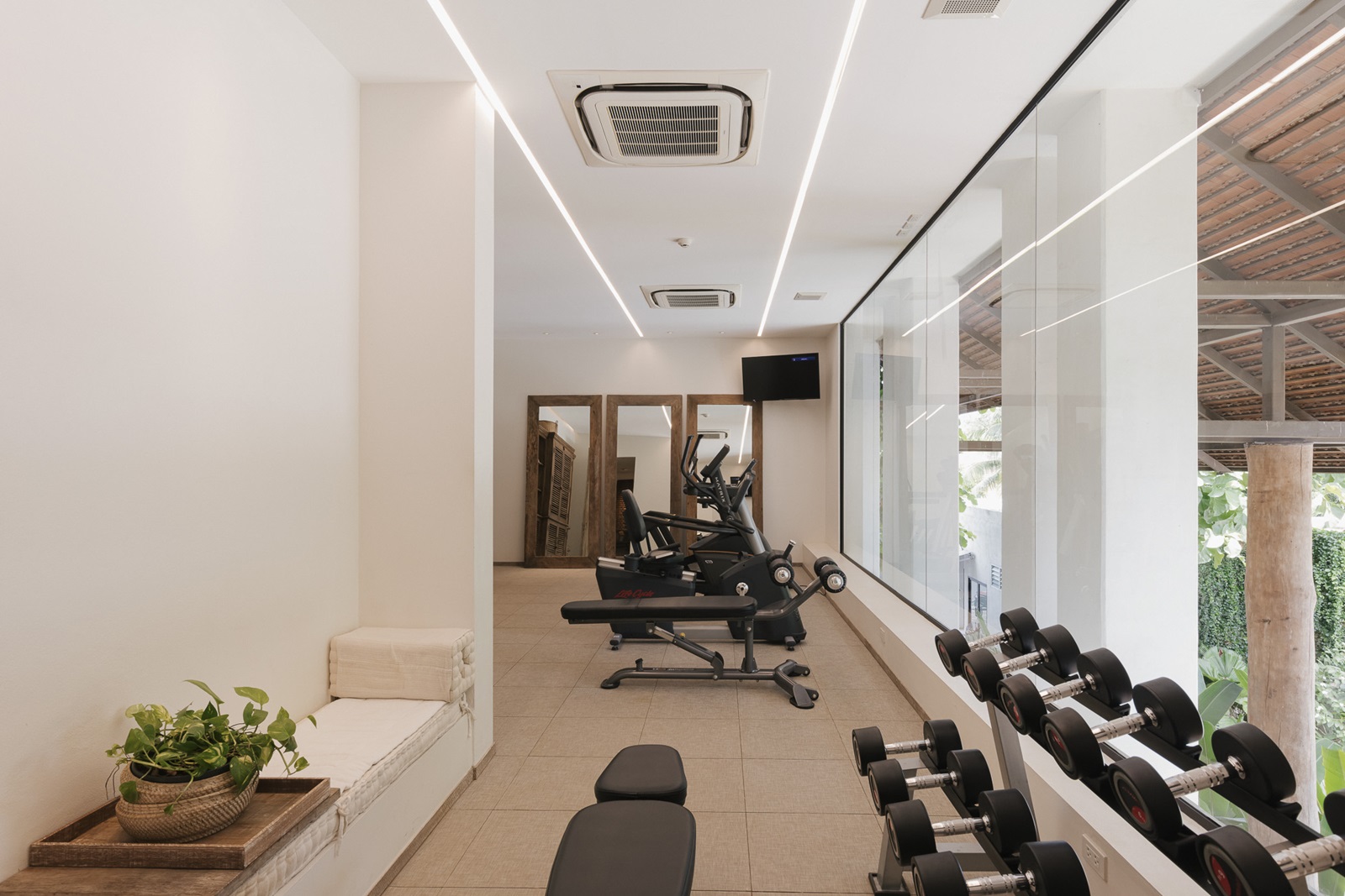 Alle kamers beschikken over airconditioning, kingsize bed, zithoek, badkamer met bad en/of douche, haardroger, badjas, minibar, safe, koffie- en theefaciliteiten, terras of balkon en zicht op de tuin of rivier.