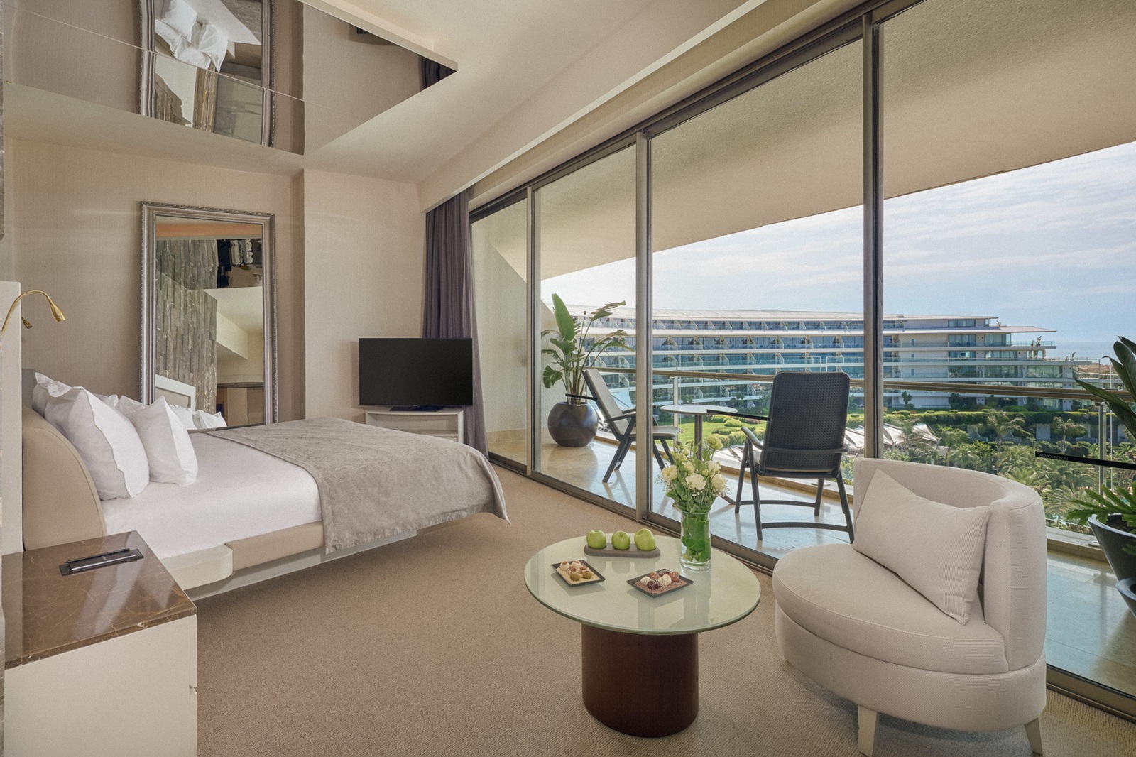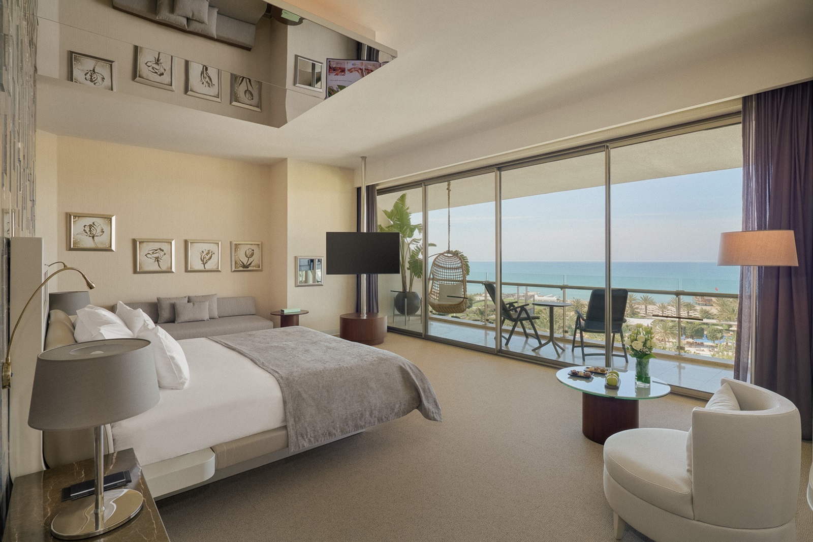 royal suites (100 m²) met woonkamer aparte slaapkamer, badkamer met bubbelbad, gratis roomservice, balkon en zeezicht