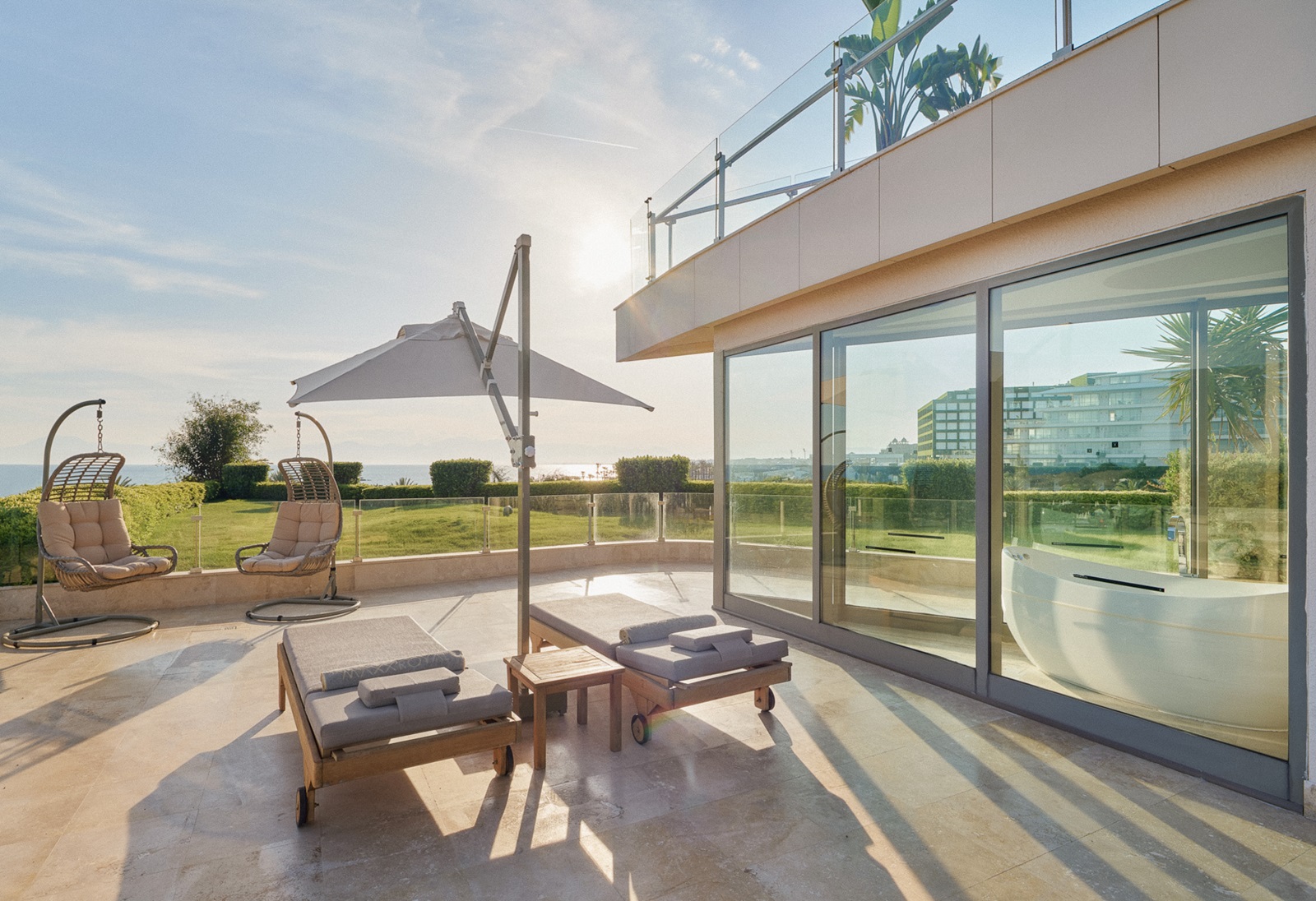 terrace familiesuites (100 m²) met 2 slaapkamers, 2 badkamers, 2 balkons (waarvan één met bubbelbad) en landzicht