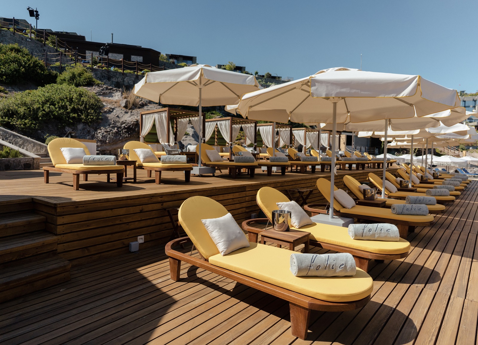 gratis ligstoelen, parasols en handdoeken aan het zwembad en het strand