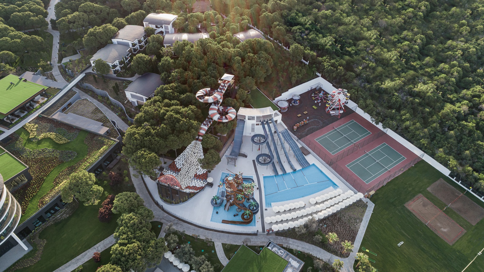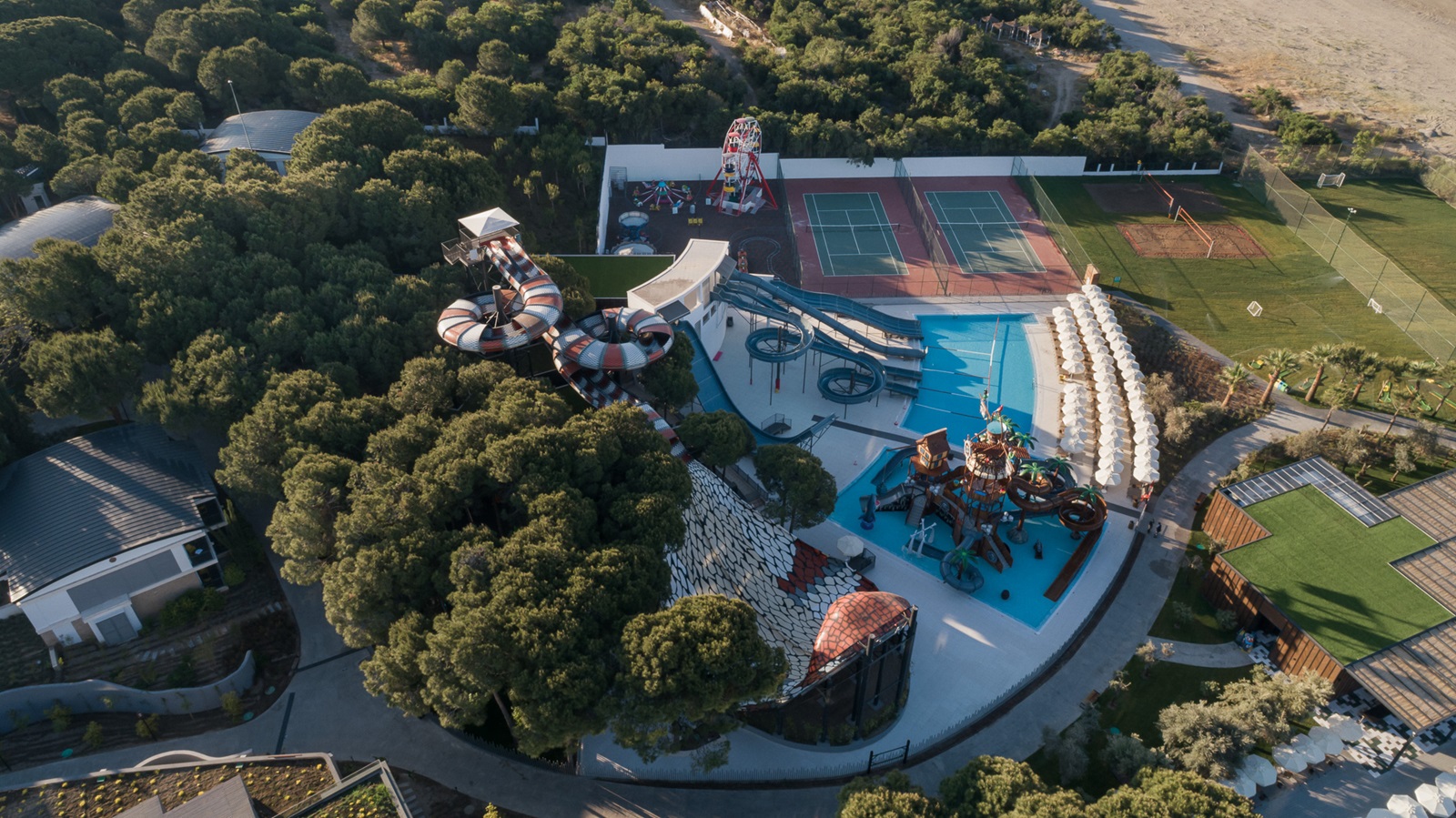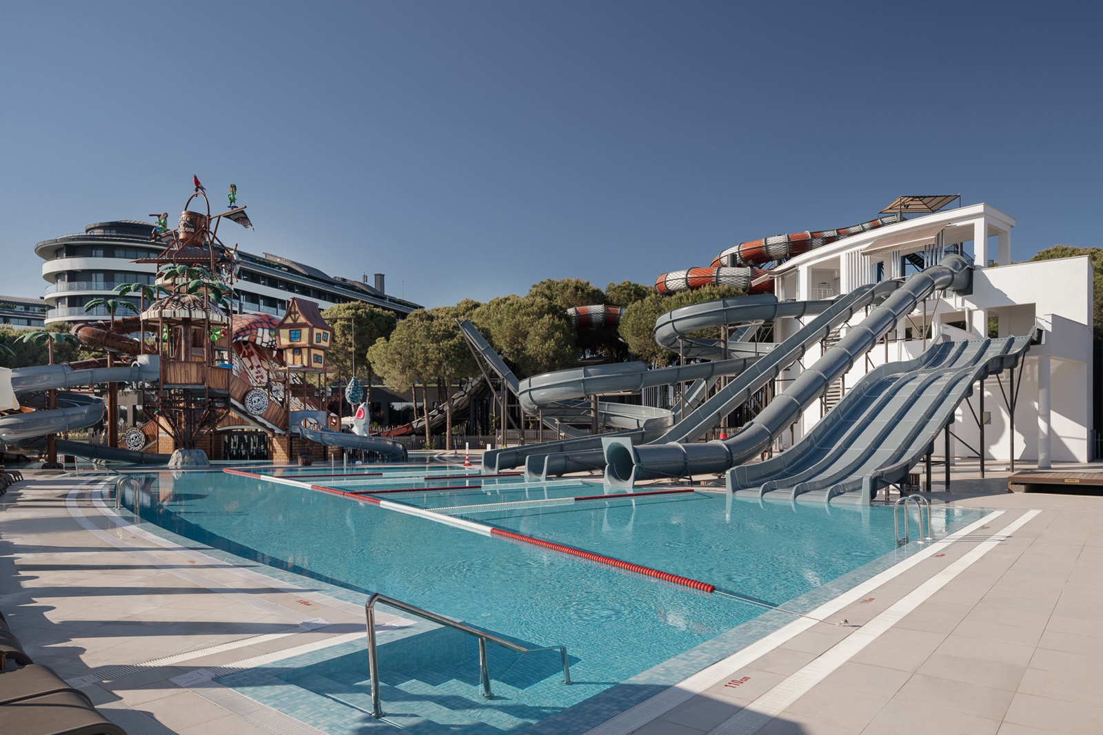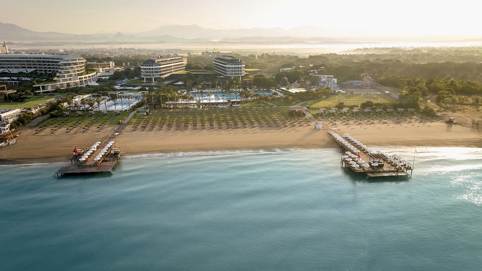 Dit prachtige luxeresort met een uitgebreide all inclusive-formule ligt direct aan het zandstrand van Belek. Het is een feest voor wie van water houdt: er zijn vier buitenzwembaden en een binnenzwembad, en het neusje van de zalm is het aquapark met glijbanen. Ook kids vervelen zich geen moment, dankzij de kinderclub, animatie en een apart kinderbad. De hele familie slaapt samen in ruime, erg trendy ingerichte kamers, waar zilveren accenten perfect passen bij het designmeubilair. Speciaal voor gezinnen zijn er ook een speciaal familierestaurant met terras en acht à-la-carterestaurants. Weer op krachten komen kan in het stoombad of de sauna.