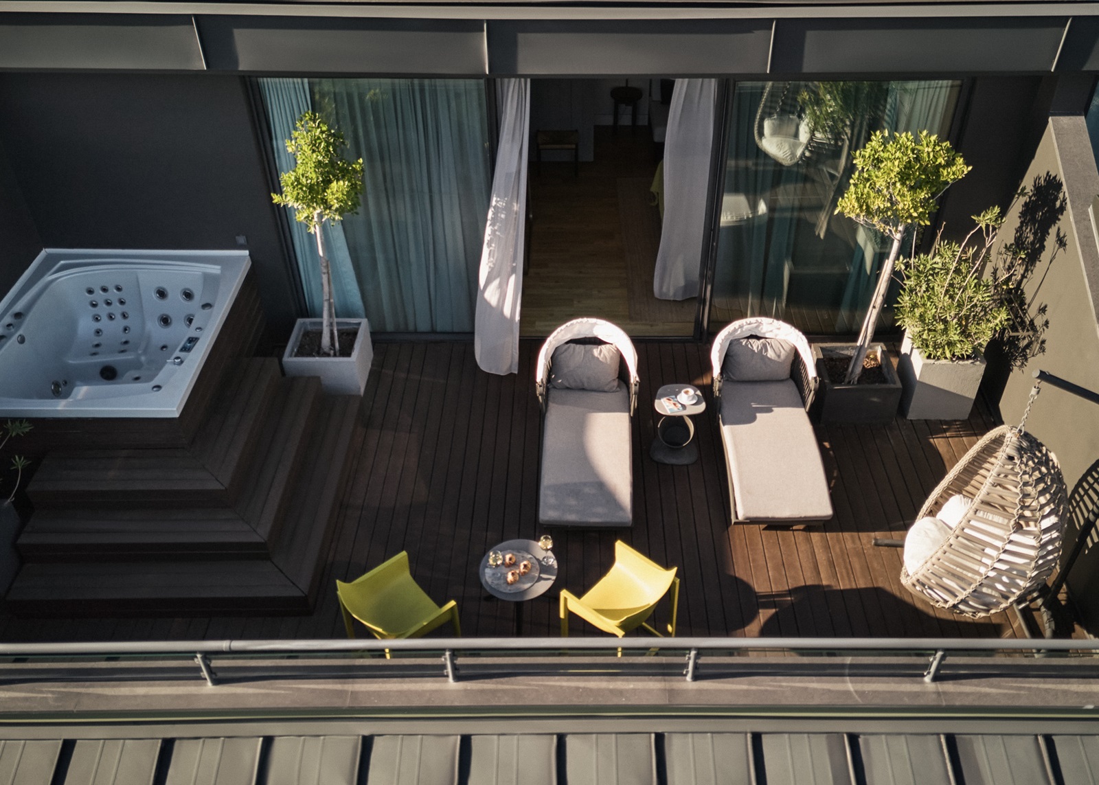 deluxe kamers (30 m²) gelegen in het hoofdgebouw met groot terras (30m²) met jacuzzi, lateraal zeezicht en extra privileges: o.a. gepersonaliseerde check-in, 1 gratis diner in elk lk à-la-carterestaurant (met uitzondering van Carino en Wen Teppanyaki, mits reservering en volgens beschikbaarheid), dagelijks maxibar