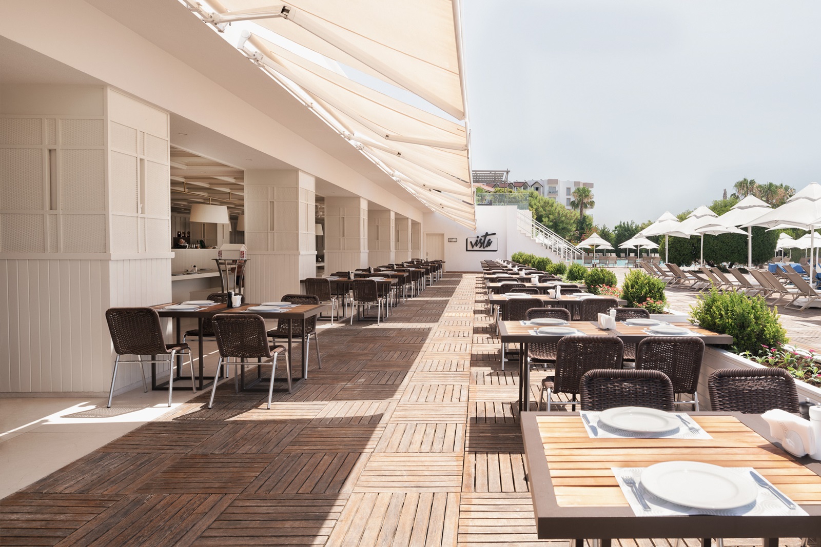 7 à-la-carterestaurants (€, behalve ‘Cuisine24’): internationaal, Turks, Italiaans, Chinees, teppanyaki, Grieks en steak house