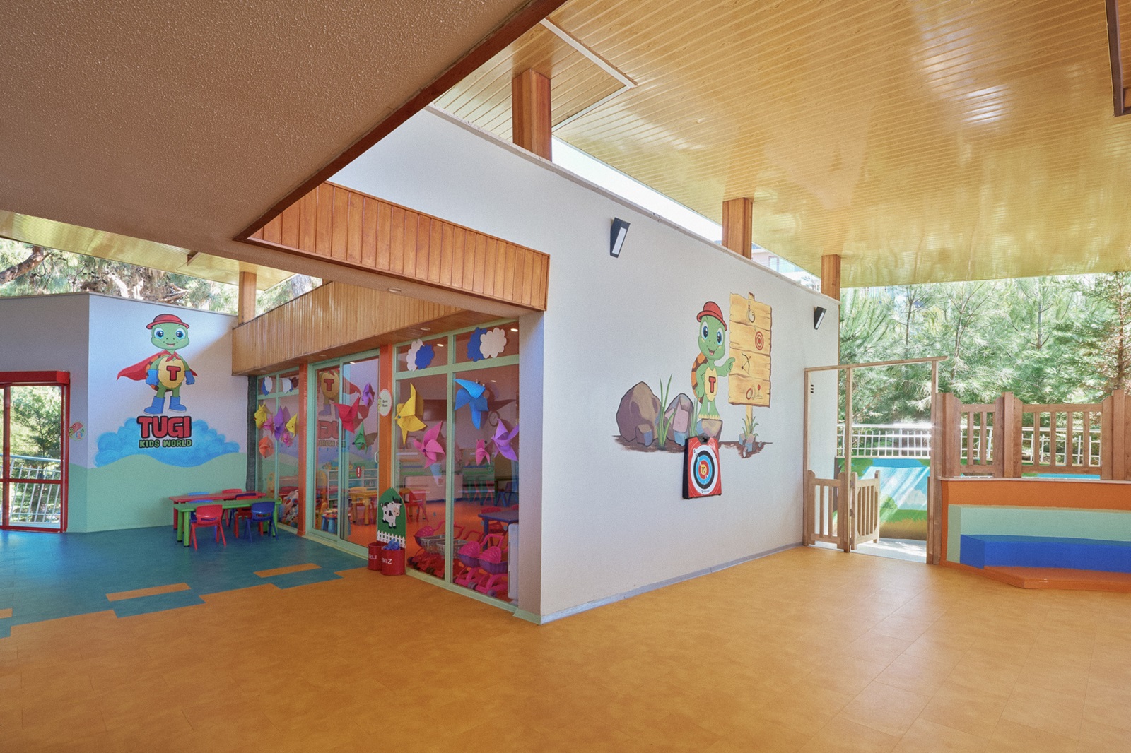 Tugi Kids World met babyclub (0-3 jaar, met begeleiding van de ouders), miniclub (4-7 jaar), midiclub (8-12 jaar), tienerclub (13-17 jaar), minicinema