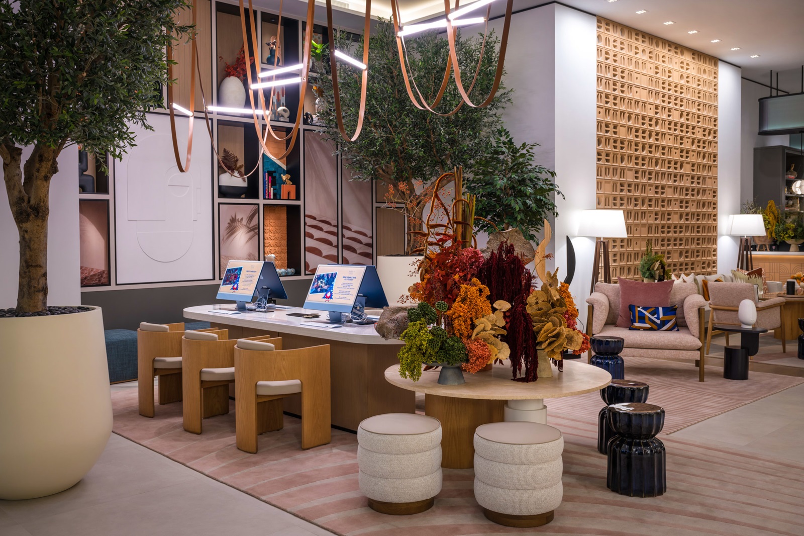 hedendaagse lobby met bar (koffie, lichte maaltijden) en zicht over de marina